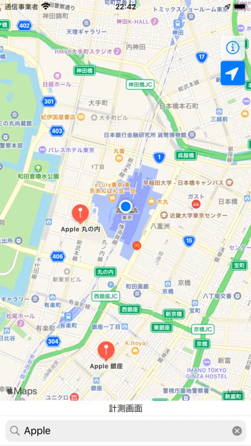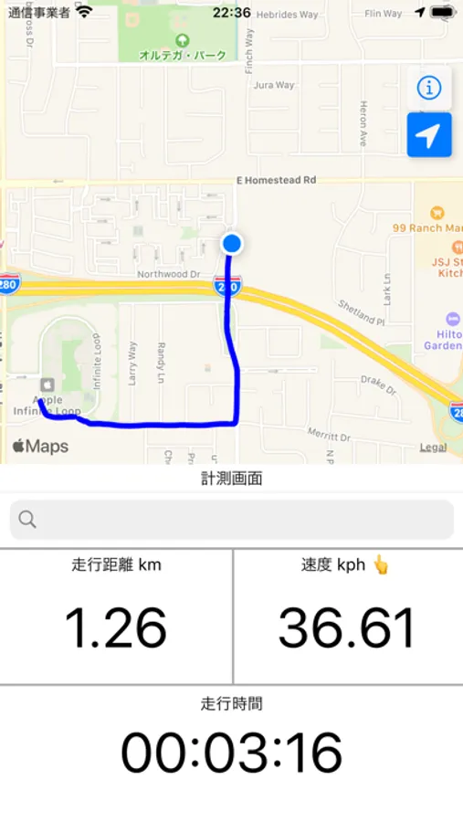 ・移動しても、GPSで現在位置からの距離を更新し続けます。