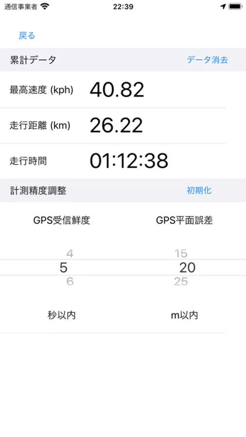 ・最高速度、走行距離、走行時間を累計データとして保存します。