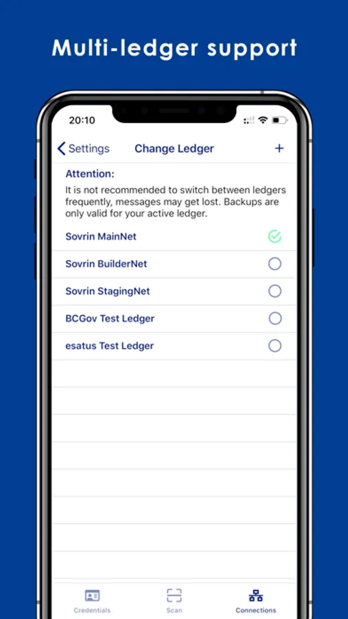 This app is multi-ledger ready and comes with a set of predefined networks:
