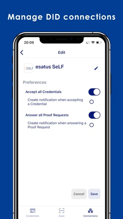Self-Sovereign Identity technology enables you to manage your online identity without a need for dozens of passwords or a third party you need to trust. Just like a physical wallet in which you carry your ID cards, you can use the esatus Wallet App to gather credentials from public issuers like companies or agencies.