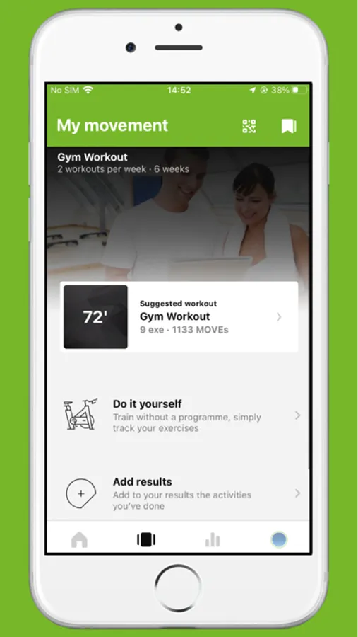 - TRAINING: overal toegang tot uw persoonlijke fitnessprogramma; toegang tot oefeningendatabase met instructiefimpjes; trainingsresultaten invoeren en bekijken van zowel fitnesstrainingen als groepslessen.