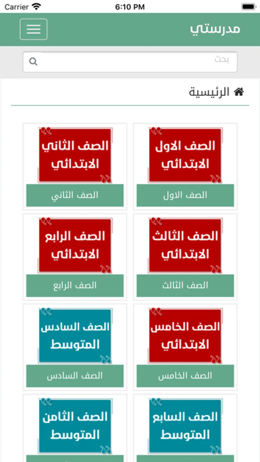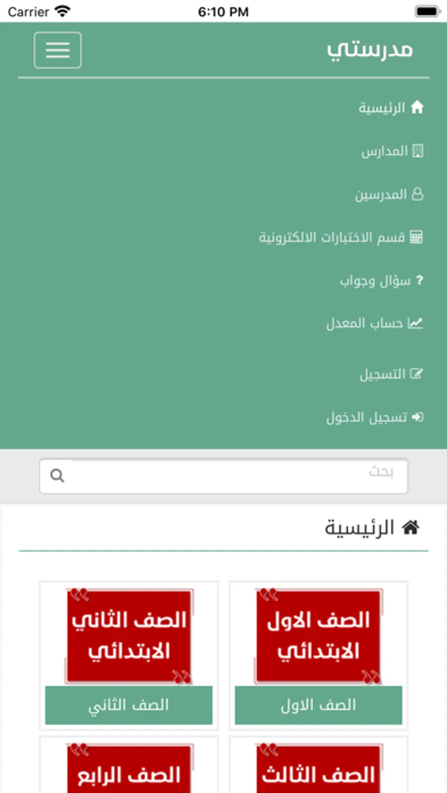 كما يحتوي التطبيق قسم للاختبارات الالكترونية لجميع المراحل والمواد