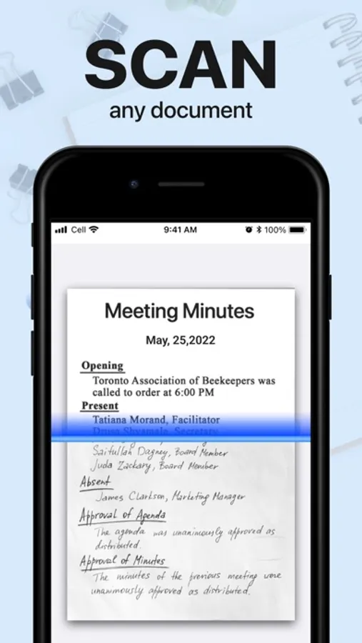 You can scan like a pro anything you need: contracts, books, to-do lists, paper notes, fax papers, receipts, ID cards and store your scans as high-quality PDF or JPEG files.