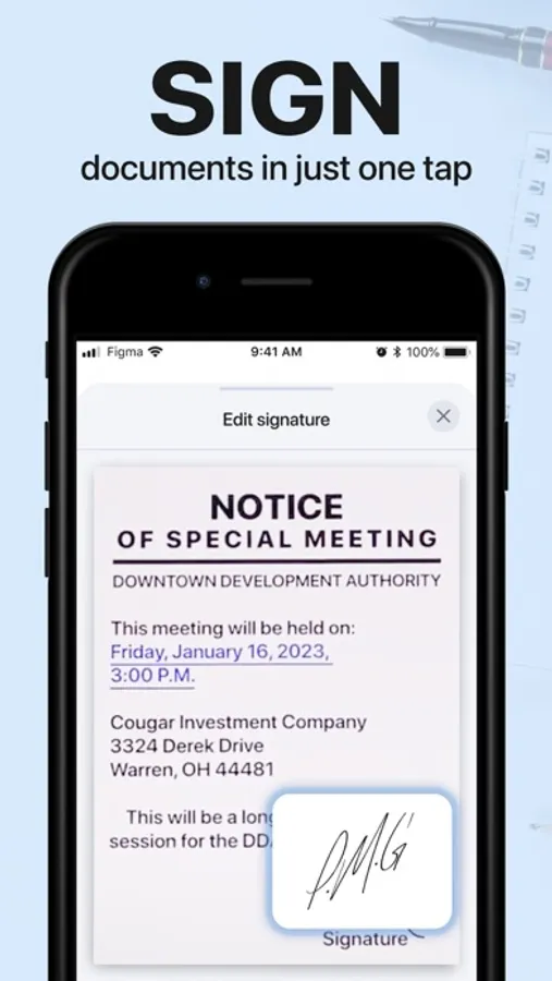 SIGN. E-sign any docs by simply adding your signature to electronic documents with just a few taps.