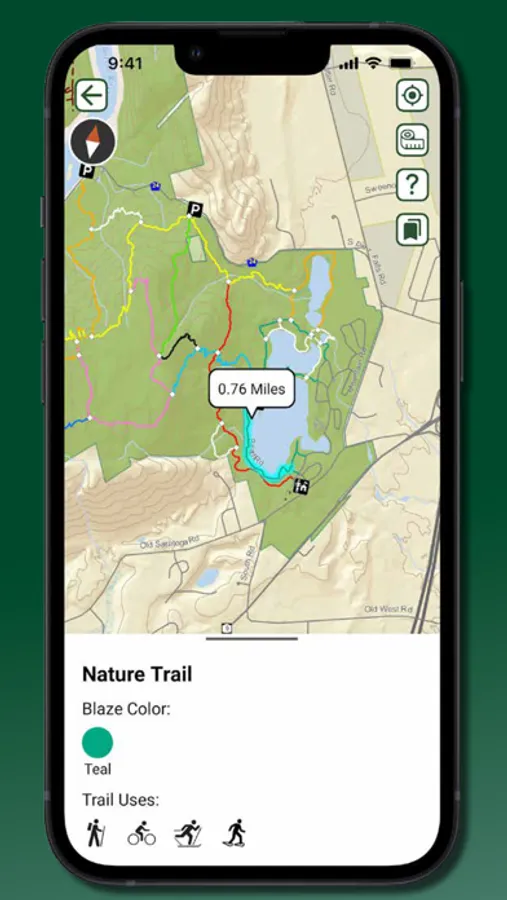 • Information about trails, park features, and amenities by simply tapping on a trail or icon;