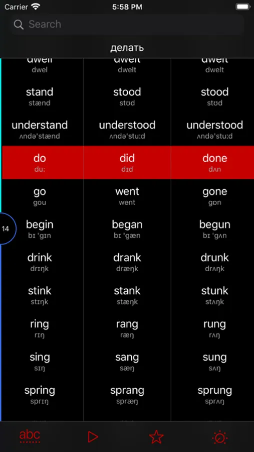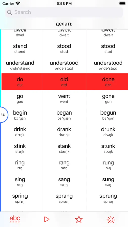 Irregular Verbs may be arranged alphabetically or in patterns to make learning easy and very fast. There are twenty patterns of 172 verbs voiced over by native British speaker.
