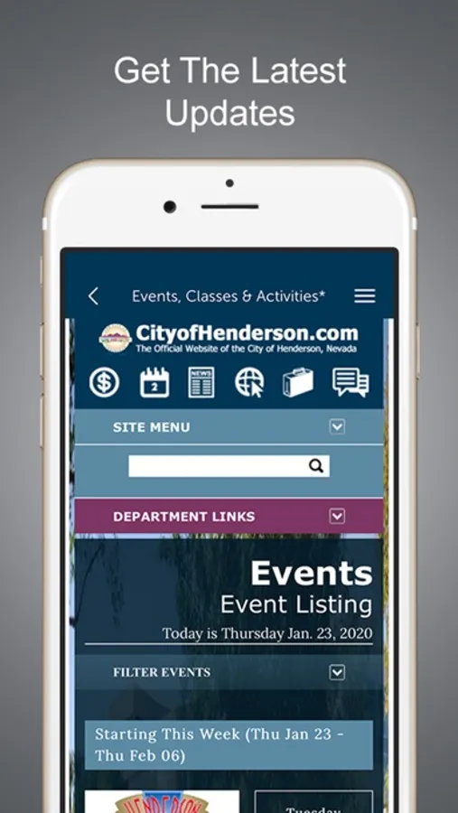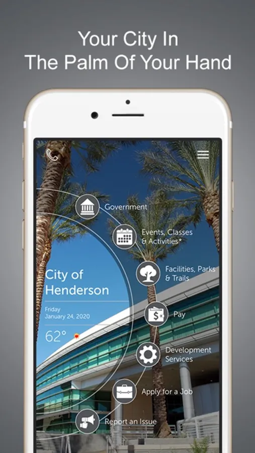 Become a civic citizen and engage with your city like never before by downloading the official app for the City of Henderson, NV. With features like Government, City Directory, Events, Classes & Activities, Facilities, Parks & Trails, Apply for a Job, and Report an Issue you'll find it easier than ever to stay connected with the City of Henderson, NV with just a few taps on your mobile device.