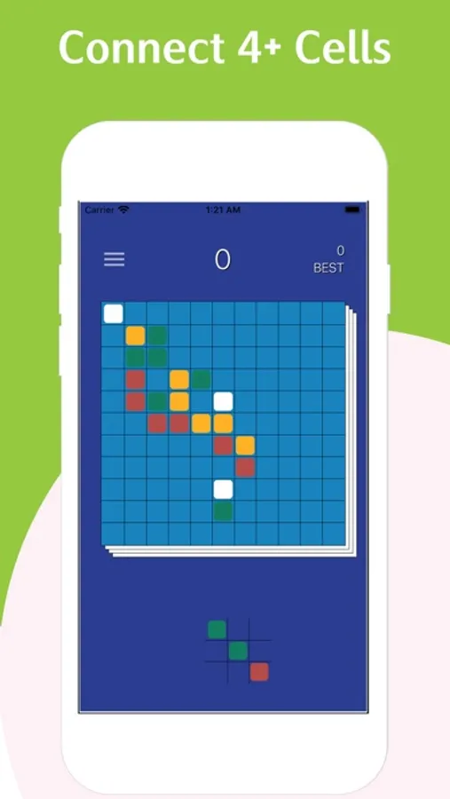 Connect four more cells with the same color in up / down / left / right direction to gain score.