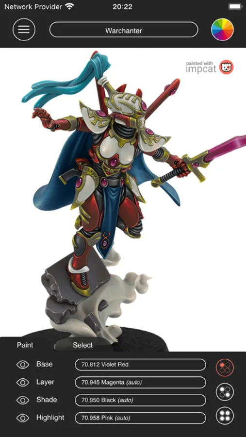 impcat (short for Interactive Miniature Painting Catalogue) is a simulator for photorealistic painting results on gaming and tabletop miniatures.