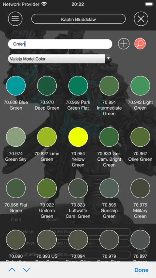This tool gives you a variety of miniature images with individually customizable body sections, that you can paint with colours you own or perhaps wish to purchase. It works with predefined colour palettes, using names and values as promoted by their manufacturers.