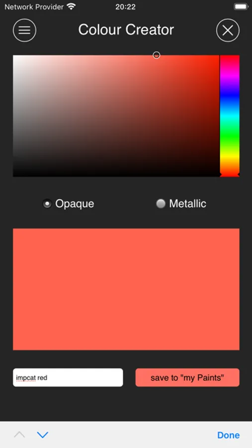 - A colour creating tool, for creating opaque and metallic paints of any colour you like