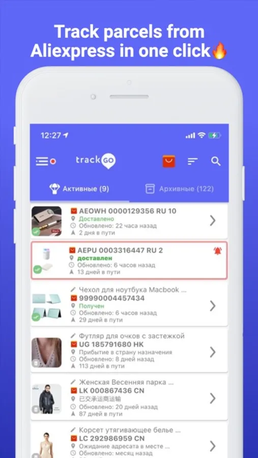 Track all your parcels with Aliexpress (aliexpress), Joom (Jum), JD, Pandao, GearBest and other online stores, without ads, registrations and SMS, for that with Push notifications on parcel statuses, Russian mail tracking.