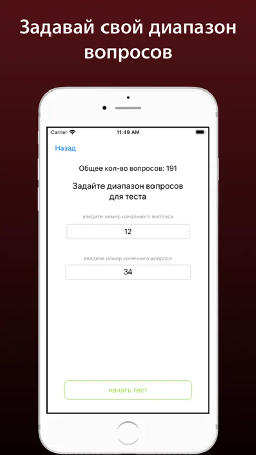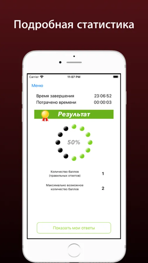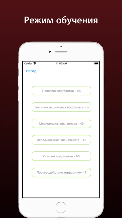 • Подготовка - Позволяет изучить вопросы в текстовом формате с отмеченными правильными ответами;