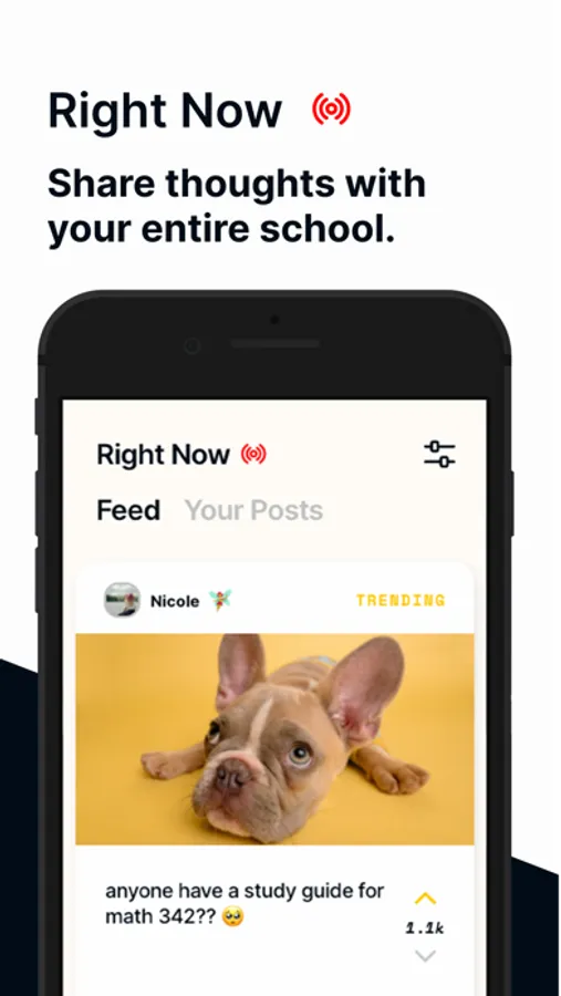 View and post in your campus or every campus 24/7, with a live message feed. Broadcast your thoughts, funny moments, or ask for help. With Right Now, anything on campus is just a post away.