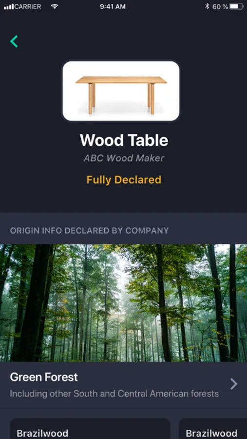 • Scan, search for, or browse wood products to discover what kind of wood they contain and where it was harvested. You can browse a list of products that already have declared origin information.