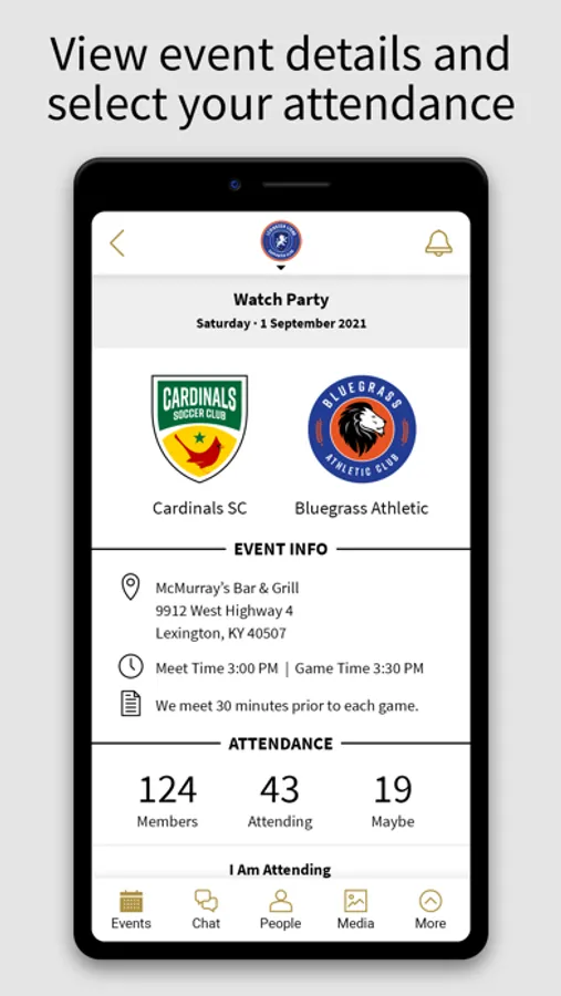 - Manage events by defining your meeting locations for your favorite team's home and away games and easily create events for all the games.