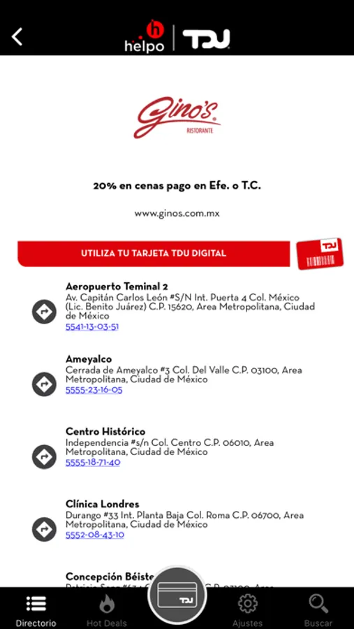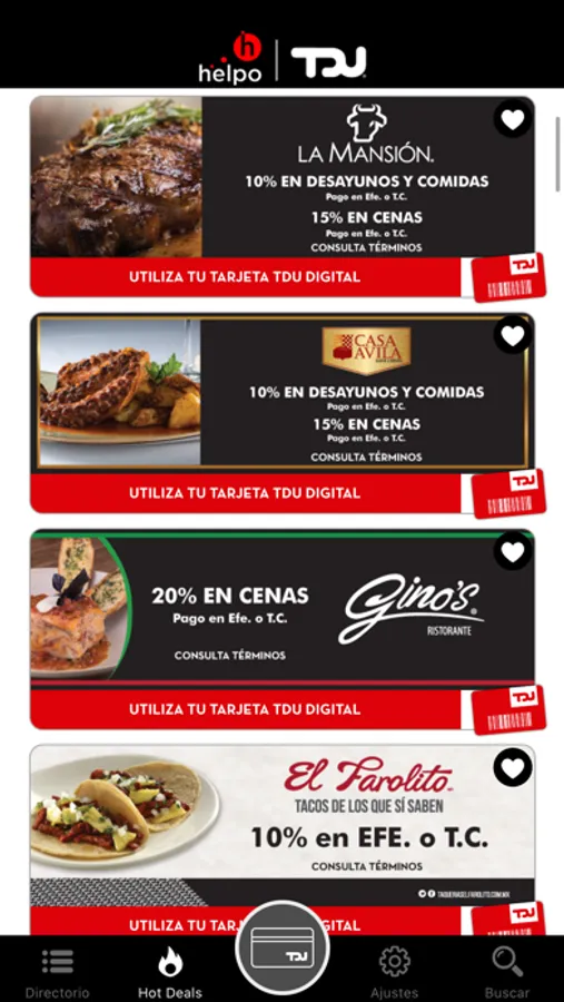 La aplicación de TDU Helpo es el directorio móvil para consultar los descuentos permanentes del 10% y hasta el 50% en más de 9,500 establecimientos afiliados.