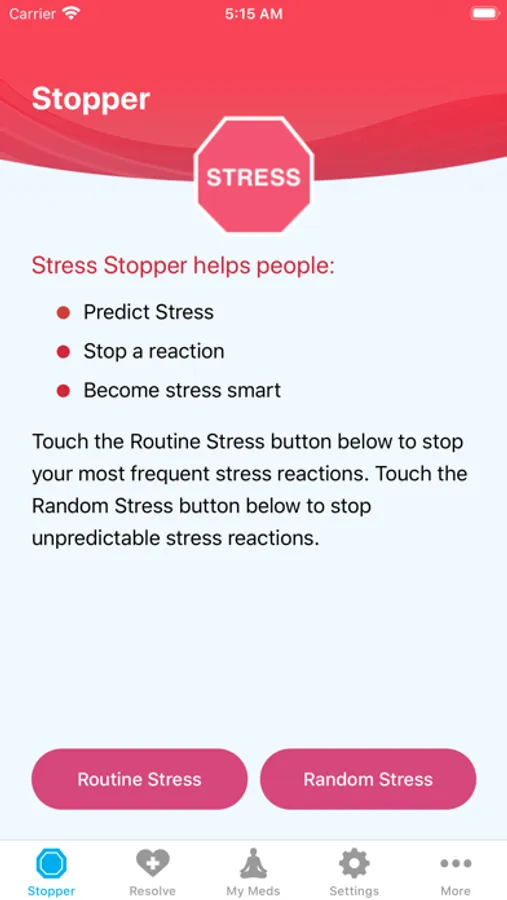 The key to living stress free is using this app daily. Every time you become stressed, press the app icon and breathe. Every time a Stress Stopper reminder shows up on your phone, breathe along with the animation. When it’s time to meditate, give yourself the 20-minutes of relaxation that will improve your life. And finally, get to the root of the issue. Use the Resolve Tab to heal any stressful memories from your past that may be affecting the quality of your present day life. Using all these tools together will prolong your life and help prevent future stress-related health issues such as cancer, panic attacks, anxiety, depression, cardiovascular and gastrointestinal diseases, migraines, sleep disorders, chronic fatigue, ulcers, etc.