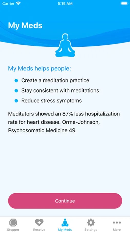 √ Meditation Practice Management - The MyMeds Tab helps you structure and maintain your daily meditation practice.