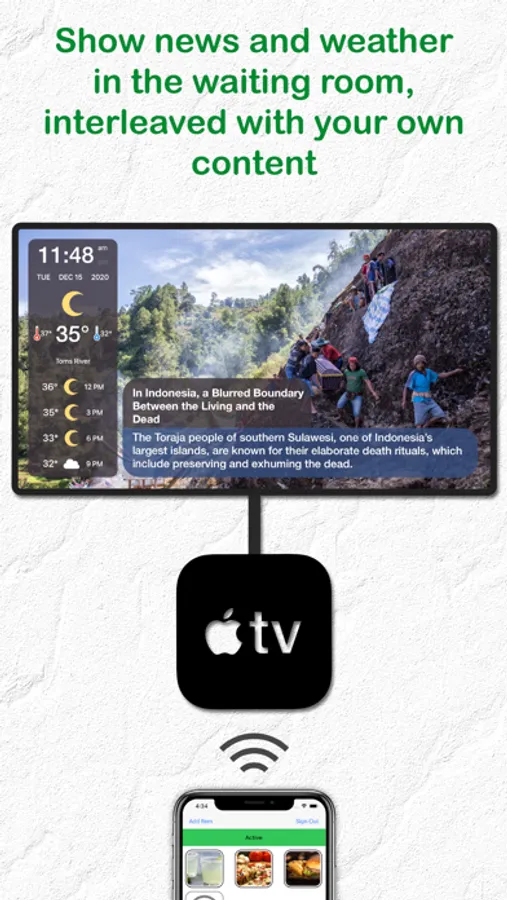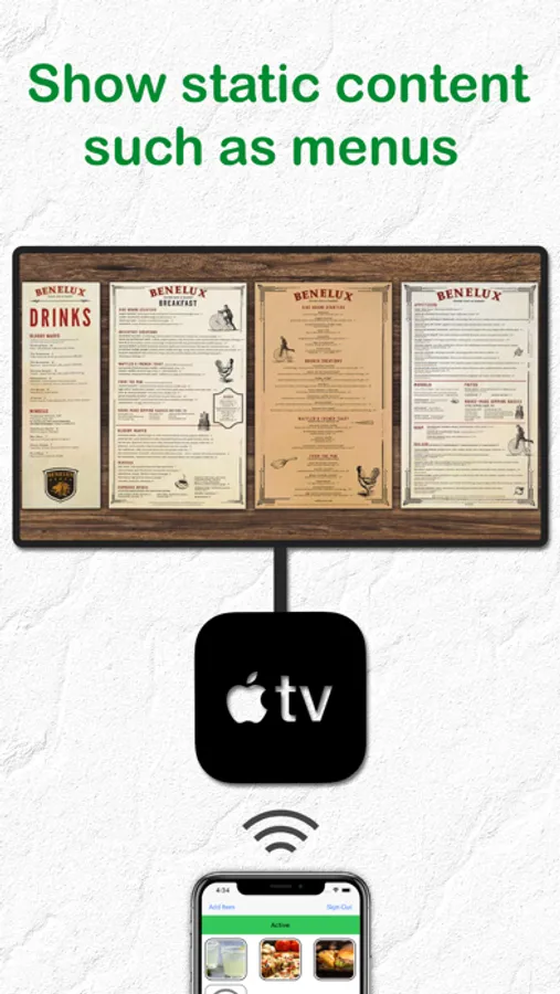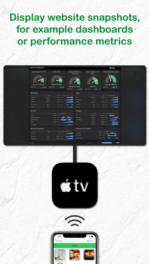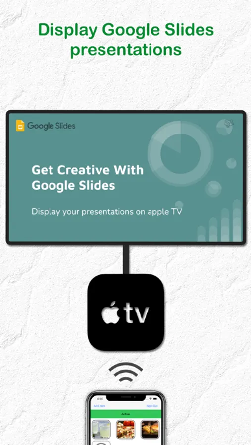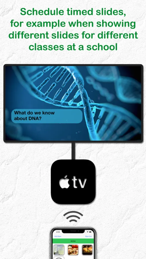 - create and manage your slides from images, videos, google slides, or website captures, all of which are displayed on the TV