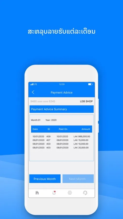 • View account balance and transaction history of both LDB Agency accounts and LDB accounts.