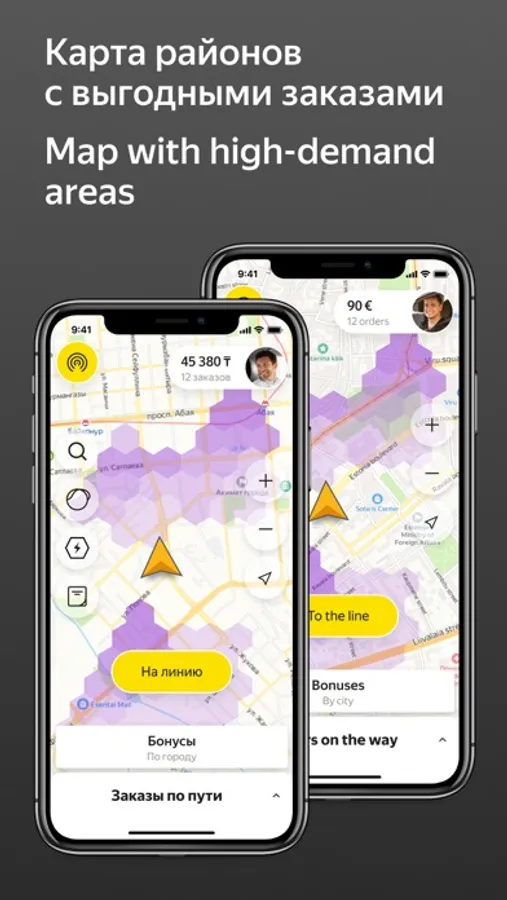 The Yandex Pro app shows you bonuses you can get for completing orders. Take advantage of bonuses to earn even more.