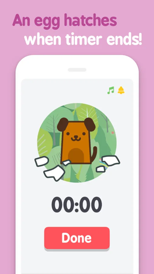An egg hatches when timer ends, revealing a surprising animated cute animal!