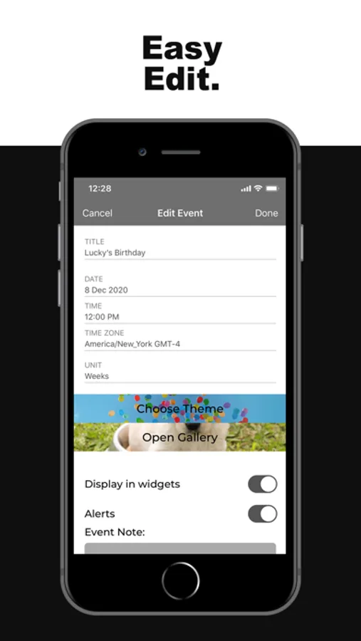 - Add your count down to your widgets to view your events quickly