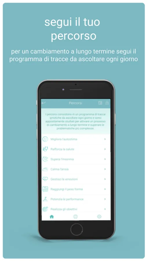 Sarà sufficiente selezionare l'area psicologica che vuoi migliorare e scegliere la traccia che ritieni più adatta, indossare le cuffie e lasciarti accompagnare dalla voce.