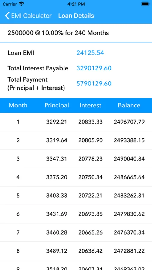 - Calculate EMI on monthly basis
