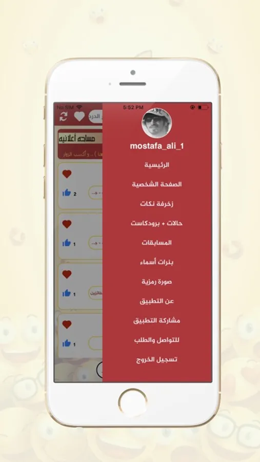 من حيث أختيار الصوره الرمزيه و حالته داخل الدردشة و يوفر التطبيق
