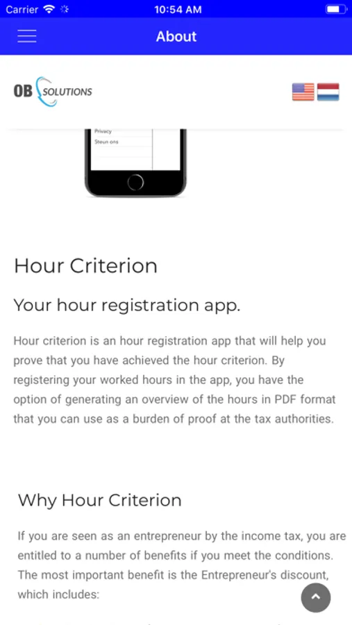 Hour criterion is an hour registration app that will help you prove that you have achieved the hour criterion. By registering you'r worked hours in the app, you have the option of generating an overview of the hours in PDF format that you can use as a burden of proof at the tax authorities.