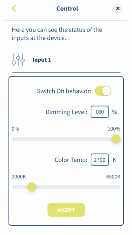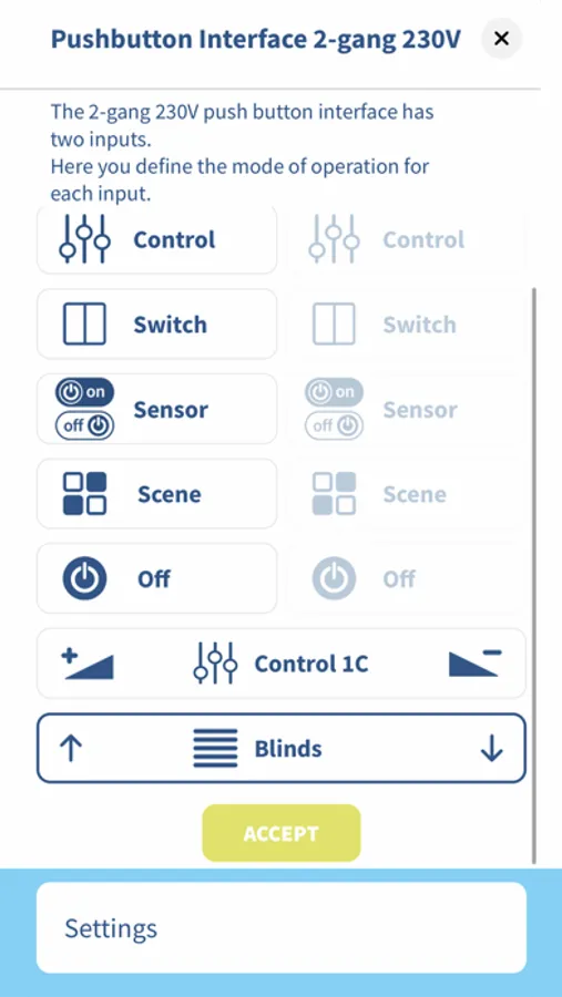 • High flexibility thanks to user specific settings for e. g. minimum brightness, switch-on behavior or blind moving time