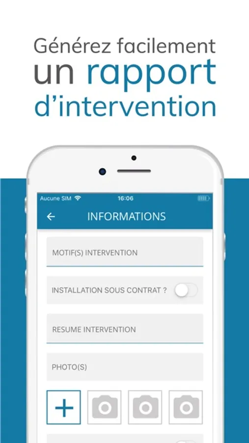 Adapté à un grand nombre d’activités, l'application permet d’intégrer tous les éléments relatif à l'intervention du technicien :