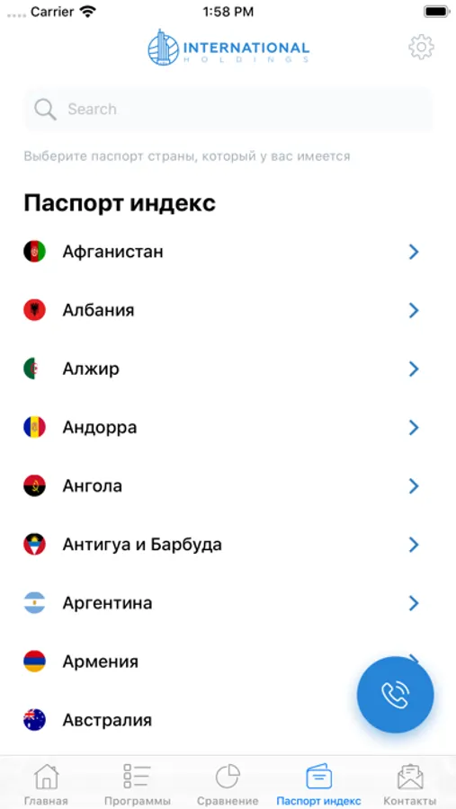 Приложение International Holdings содержит доступное описание возможностей, открывающихся перед инвестором, при оформлении экономического гражданства и резидентства одного из государств Европы, Азии, Северной Америки, Карибского бассейна и Океании.