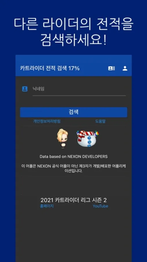 * 이 어플은 넥슨에서 제공하는 API에 의존하여 정보를 제공하고 있으며, API의 상태나 개발자의 사정에 의해 서비스가 제한 또는 중단될 수 있습니다. *