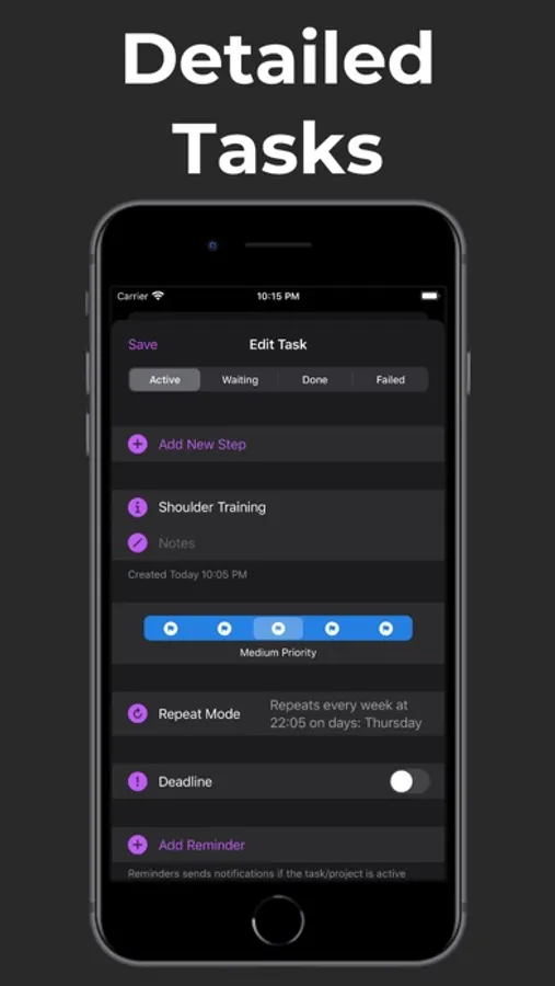 Tasks and projects can have multiple reminders.