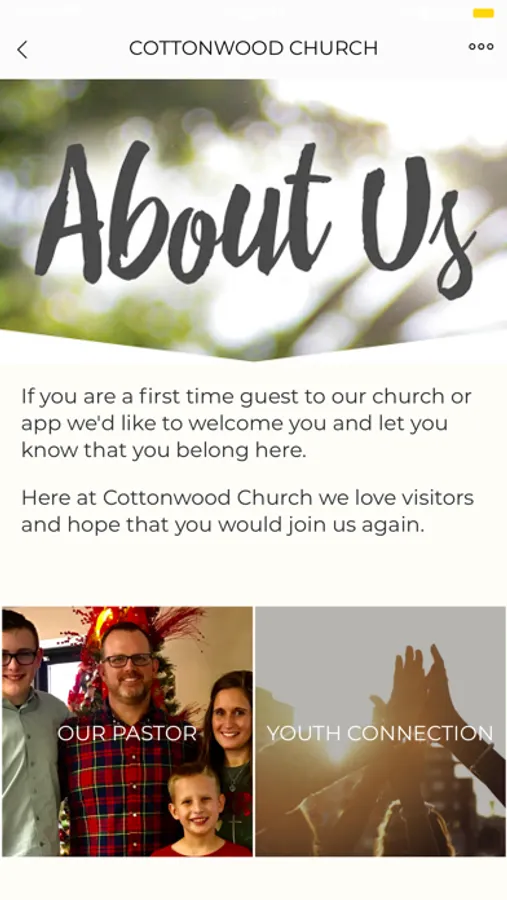 Cottonwood Church App to connect with parishoners. Offer weekly and monthly event annoucements. Features includes social wall, bulletins, sermon notes, facebook and push notifications.