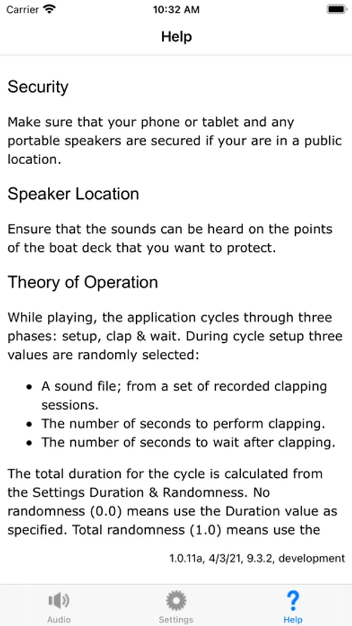 The app is designed to keep birds off boats and other recreational equipment by playing a noise periodically through a connected Bluetooth speaker or hardwired speaker.