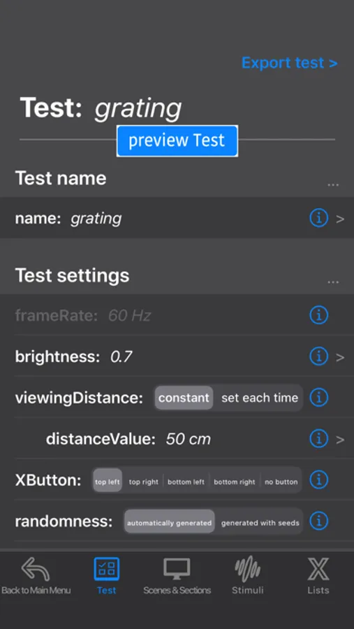 - Option to run tests at 60 or 120 Hz depending on the model of the device.