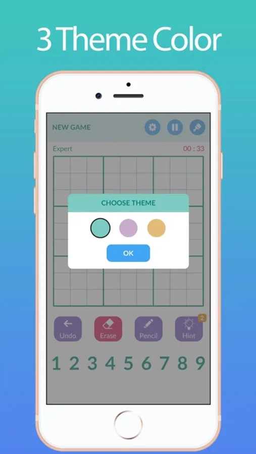 • Colored themes. Choose one of three looks to design your own sudoku kingdom! Play with more comfort, even in the dark!