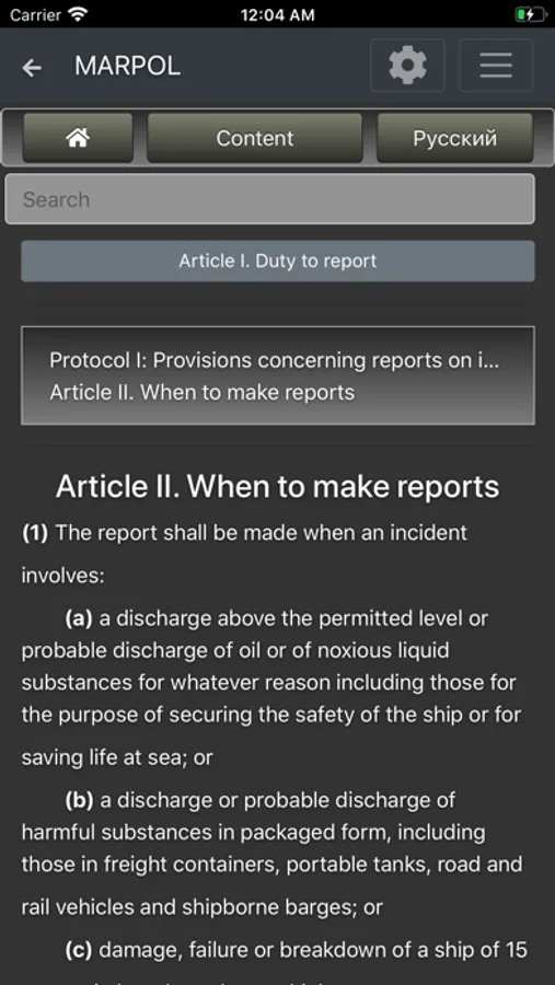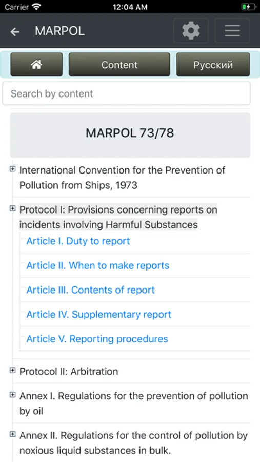 cMate-MARPOL contains the full text of the MARPOL Convention with the latest amendments and additions in two languages (Russian, English). cMate-MARPOL is equipped with a convenient search and navigation through the sections of the convention.