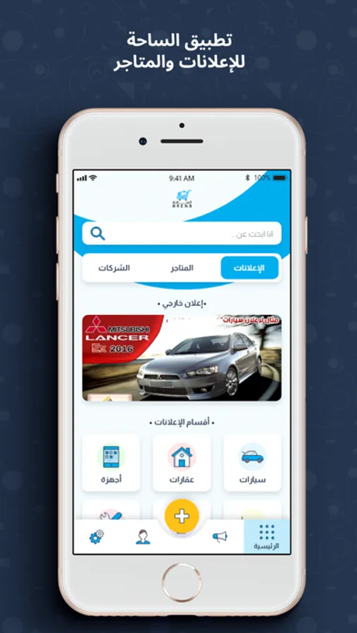 تطبيق الساحة هو اكبر تطبيق إعلانات مبوبة في الشرق الأوسط يحتوي على سيارات وأجهزة و عقارات ووظائف .. إلى آخره من الأقسام .