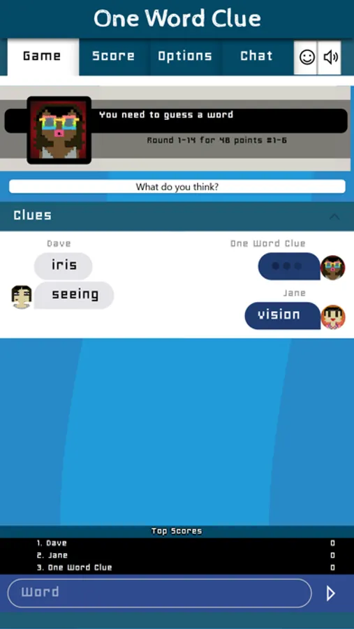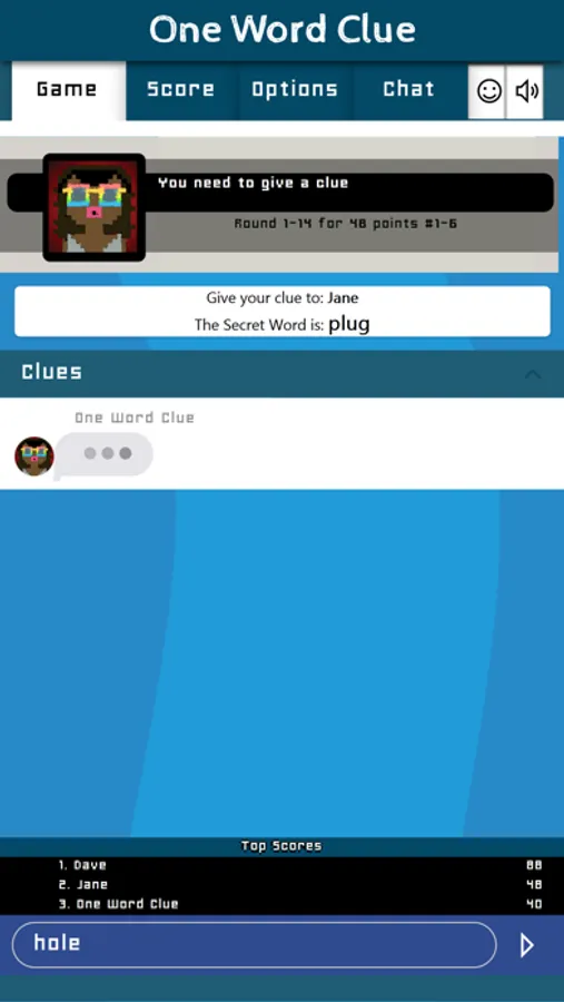 NOTE: This game only work in multiplayer, so make sure to ask your friends to join the game. The goal of the game is to give a description of only ONE word to your friends so that they can guess the secret. It supports a team-player mode, that allows two teams to compete to eachothet. In this case the round points are given to the person that gave the clue and the person that guessed it correctly.