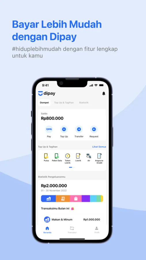 Dipay adalah layanan dompet digital yang akan membantu kamu untuk melakukan pembayaran online dan offline dengan aman, mudah, dan nyaman. Kamu juga bisa membayar semua tagihan hanya dengan sekali klik.