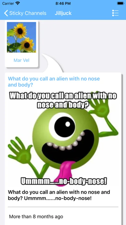 Jilljuck is a jokes, fun, humor and comedy wiki. You can share and read jokes in various languages like English, Tamil, Telugu, Hindi etc. Jilljuck features content from many languages around the world.