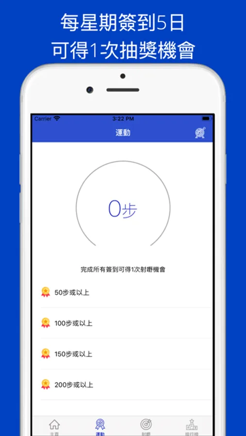 每日完成指定步數就可以得到一次射嘢機會,每星期有機會獨得10筍分,立即試下您的眼界吧!每星期簽到5日或以上,仲有一次抽獎0-3筍分機會。
