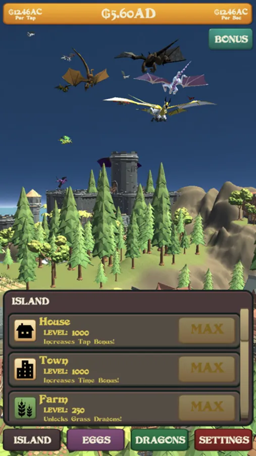 "Dragon Island - Idle Tap" is a unique, crazy fun game giving you the ability to build an amazing island, and collect over 100 unique hand-crafted dragon species!