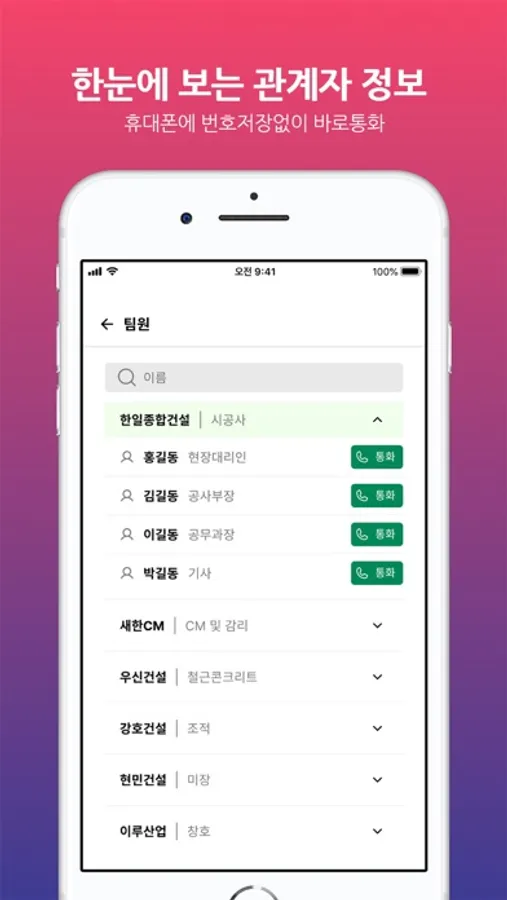 - 여러 업체가 참여하는 시공현장 또는 프로젝트