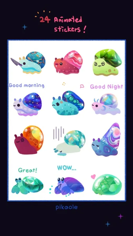 Cute animal sea turtle, tortoise, hermit crab, snail, sea slug with Jewel shells.